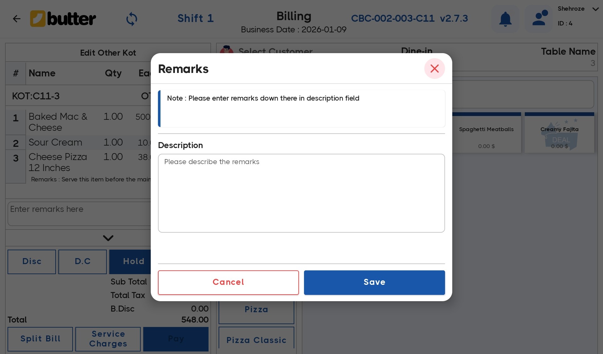 Butter POS allows you to create a list of frequently used remarks, like "extra spicy" or "no onions," which can be quickly selected when adding an item, saving time during peak hours.